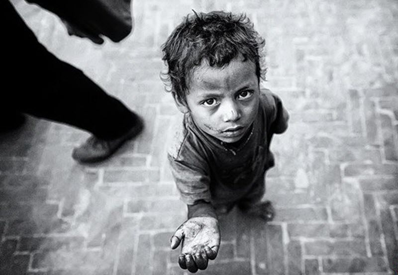 رَبَّاهُ، مَا هَذَا؟! طِفْلَةٌ حَافِيَةٌ، شِبْهُ عَارِيَةٍ، لَا تكاد تَتَجَاوَزُ السَّنَوَاتِ الْعَشْرَ، وإن تراءت آنسة في العشرين، مما رابها من فعل الدهر، وآثار السنين، رأيتها، وقَدْ حَبَسَتْ دُمُوْعَهَا فِي عَيْنَيْهَا، مُتَأَبِّيَةً، رَغْمَ نَظَرَاتِ الْمَسْكَنَةِ الَّتِي انْحَفَرَتْ فِي أَخَادِيْدِ وَجْهِهَا، وَبَيْنَ جَفْنَيْهَا، مُسْتَنِدَةً عَلَى جِدَارٍ يُرِيْدُ أَنْ يَنْقَضَّ، لا ينظر أحد إليها، ولَا يُؤْبَهُ بِوُجُوْدِهَا، وَلَا يَهْتَمُّ الْغَادِي أَوِ الرَّائِحُ لِمَاهِيَّتِهَا!