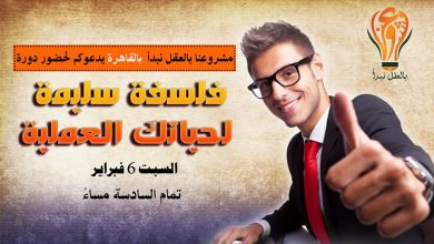 دورة (فلسفة سليمة لحياتك العملية) بالقاهرة – فبراير 2016